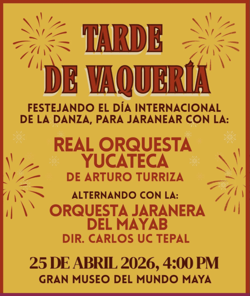 Celebrate the International Day of Dance with a vibrant traditional vaquería at the Gran Museo del Mundo Maya. This special gathering brings together dancers, performers, and jarana groups for an afternoon full of music, culture, and Yucatecan pride.