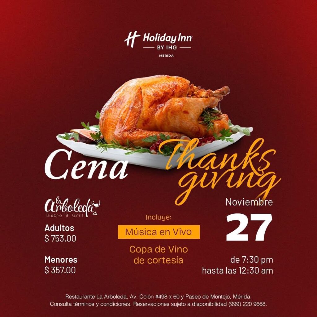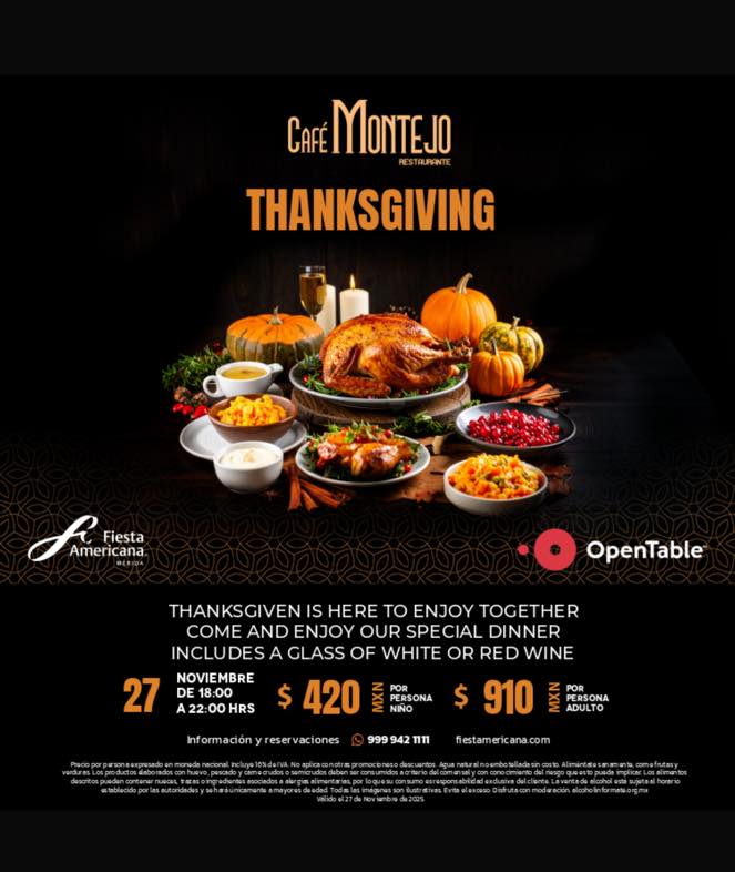 This Thanksgiving, Mérida and Progreso are serving up all the warmth of Yucatán — with a side of festive flavors, live music, and cozy gatherings. Whether you’re craving a traditional turkey dinner, a gourmet feast, or a seaside celebration with international flair, here’s your complete guide to where to celebrate Thanksgiving on Thursday, November 27, 2025.